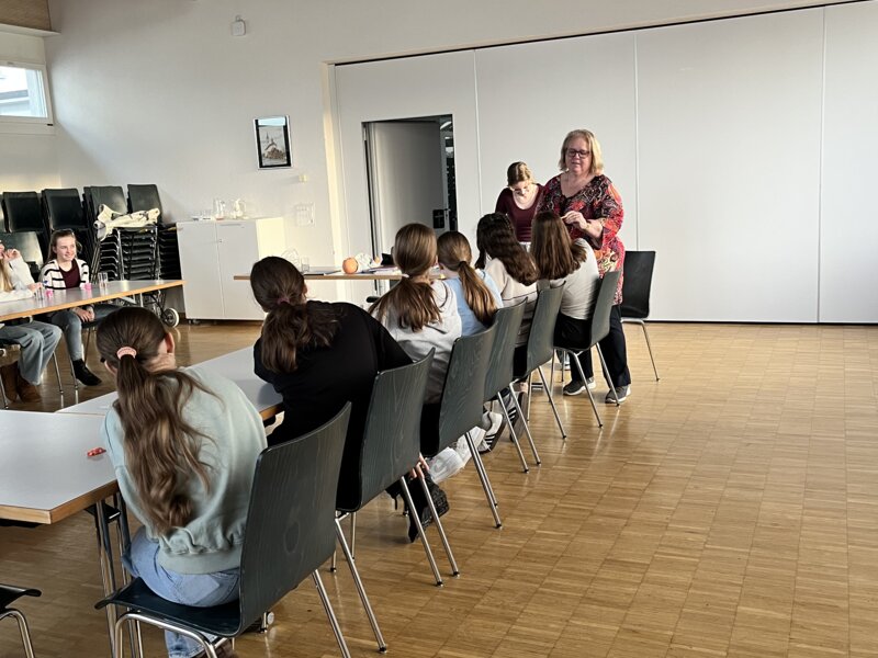 Neben dem theoretischen Teil, probierten die Mädels aus wie es ist, wenn man ein Joghurt eingelöffelt bekommt, sie machten eine kleine Bastelarbeit und konnten sich aktiv mit Fragen und Erfahrungen beteiligen. Zum letzten Mal vermittelte unsere Kursreferentin, Barba Rüegg wertvolle und praxisnahe Tipps im Umgang mit Kleinkindern und überreichte den Jugendlichen den Babysitter Ausweis.