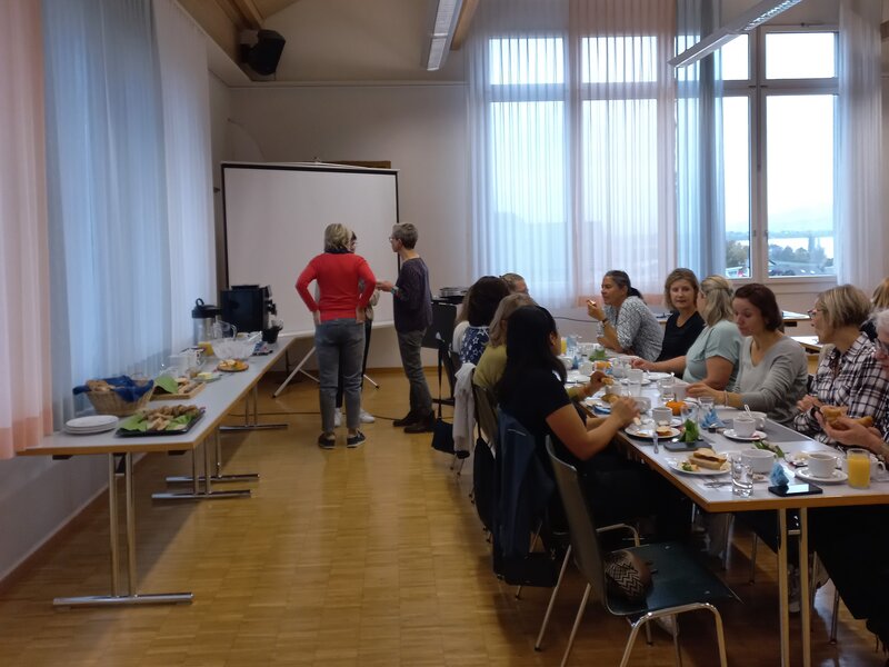 Der Frauenmorge war sehr gut besucht und begann mit einem feinen Morgenessen in fröhlicher Atmosphäre. Im Anschluss begeisterte Cordula Reding mit ihrem spannenden Referat über die Kraft des Atems. Sie zeigte auf, wie bewusstes Atmen Ruhe, Energie und Wohlbefinden fördern kann – ein inspirierender und wohltuender Vormittag für alle Teilnehmerinnen.