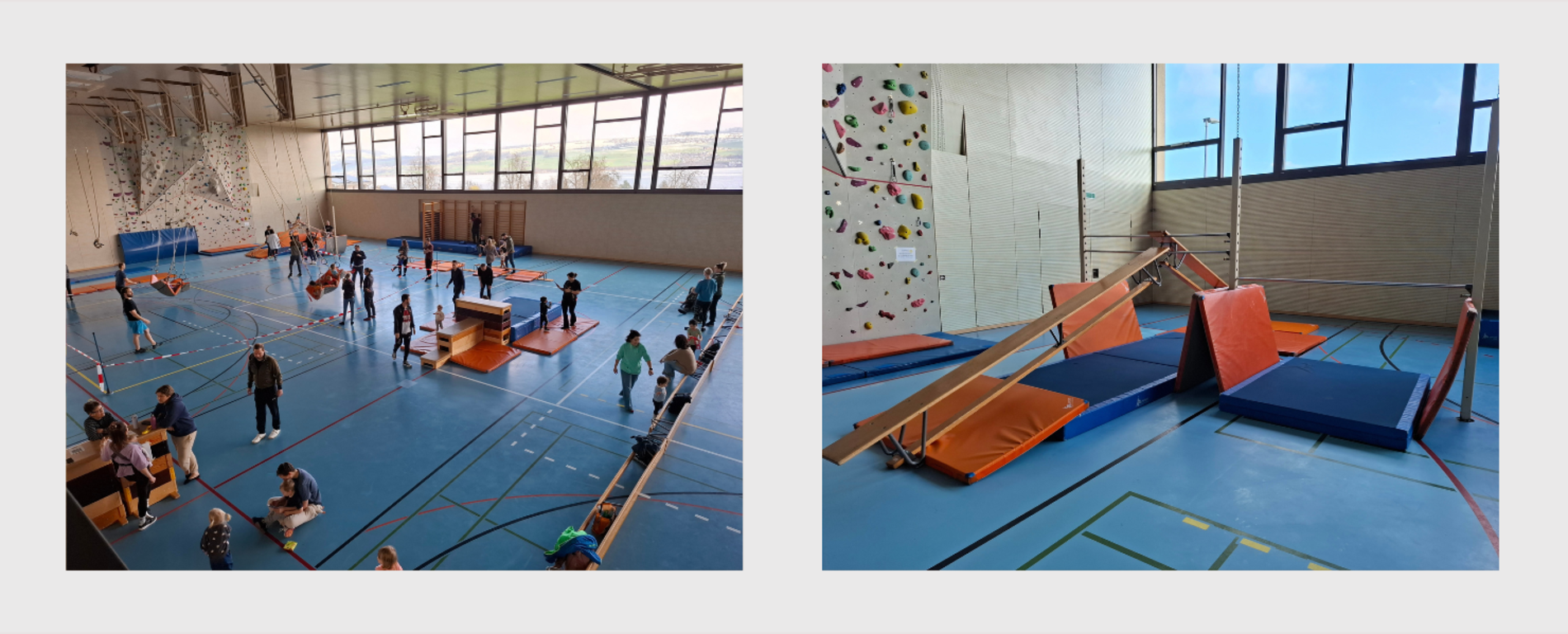 In der Sporthalle Kirchmatte entsteht im Winterhalbjahr an ausgewählten Sonntagen von 9.30 - 11.30 Uhr ein Kletter-, Spiel-, Bewegungs- und Experimentierplatz. Herzlich willkommen sind Kinder von 0-6 Jahren in Begleitung von einer erwachsener Person. Freies Kommen und gehen, es ist keine Anmeldung nötig. Versicherung ist Sache der Teilnehmenden.