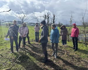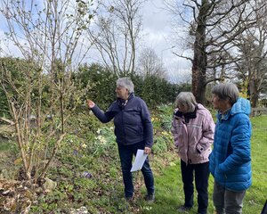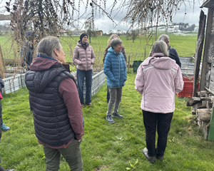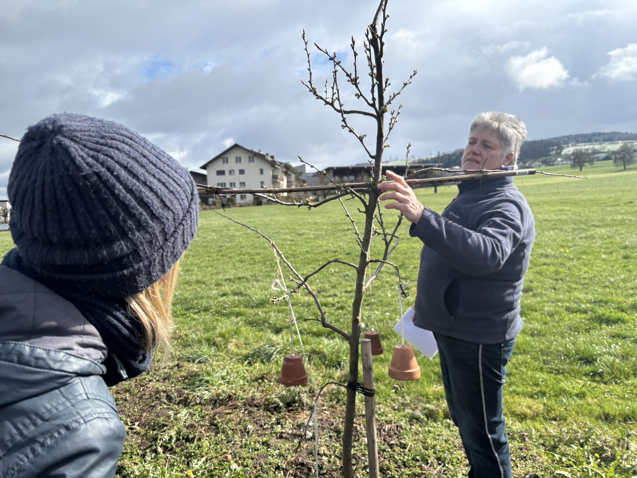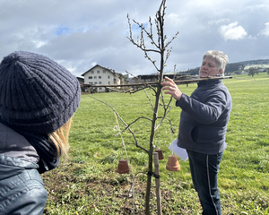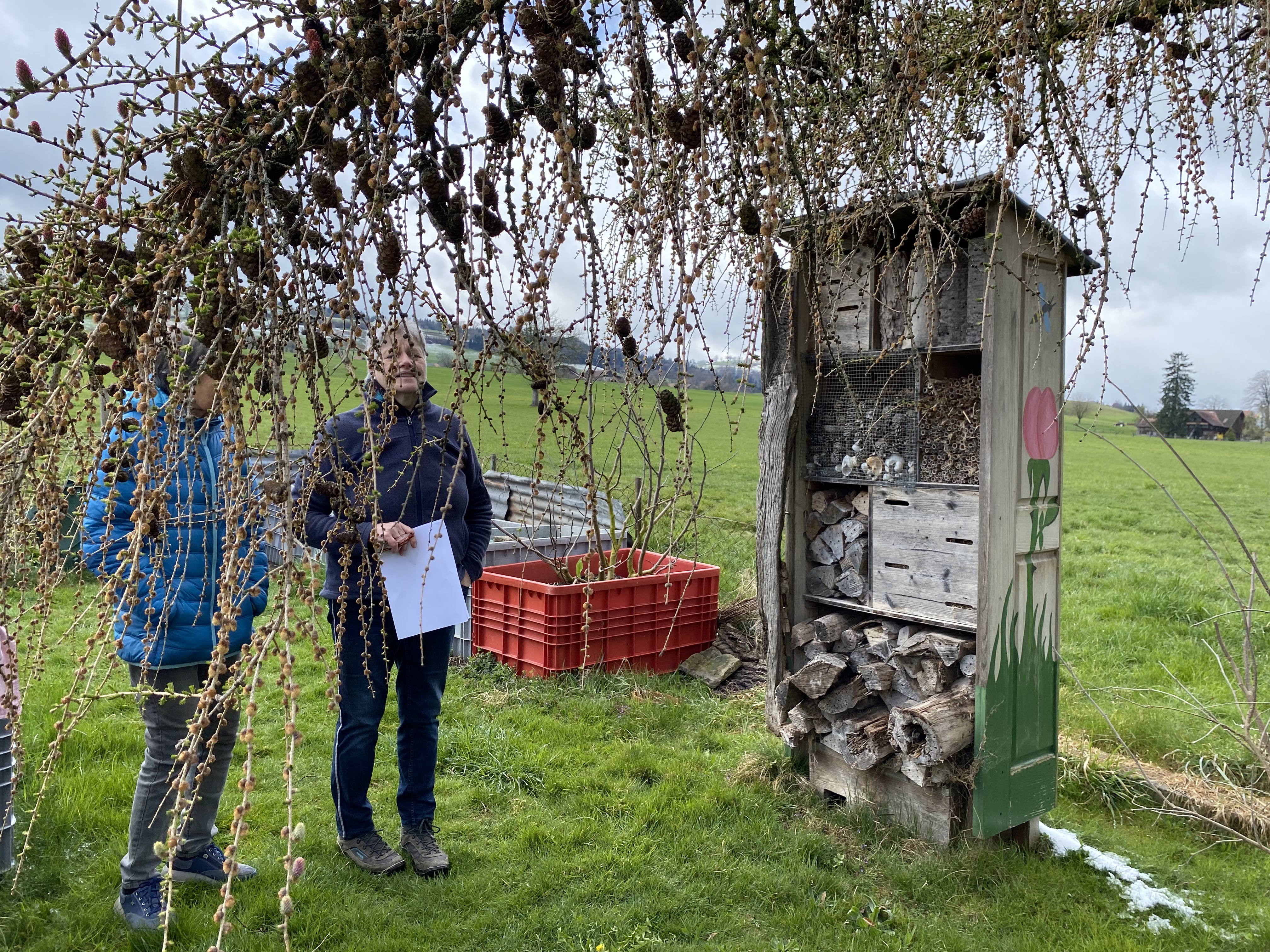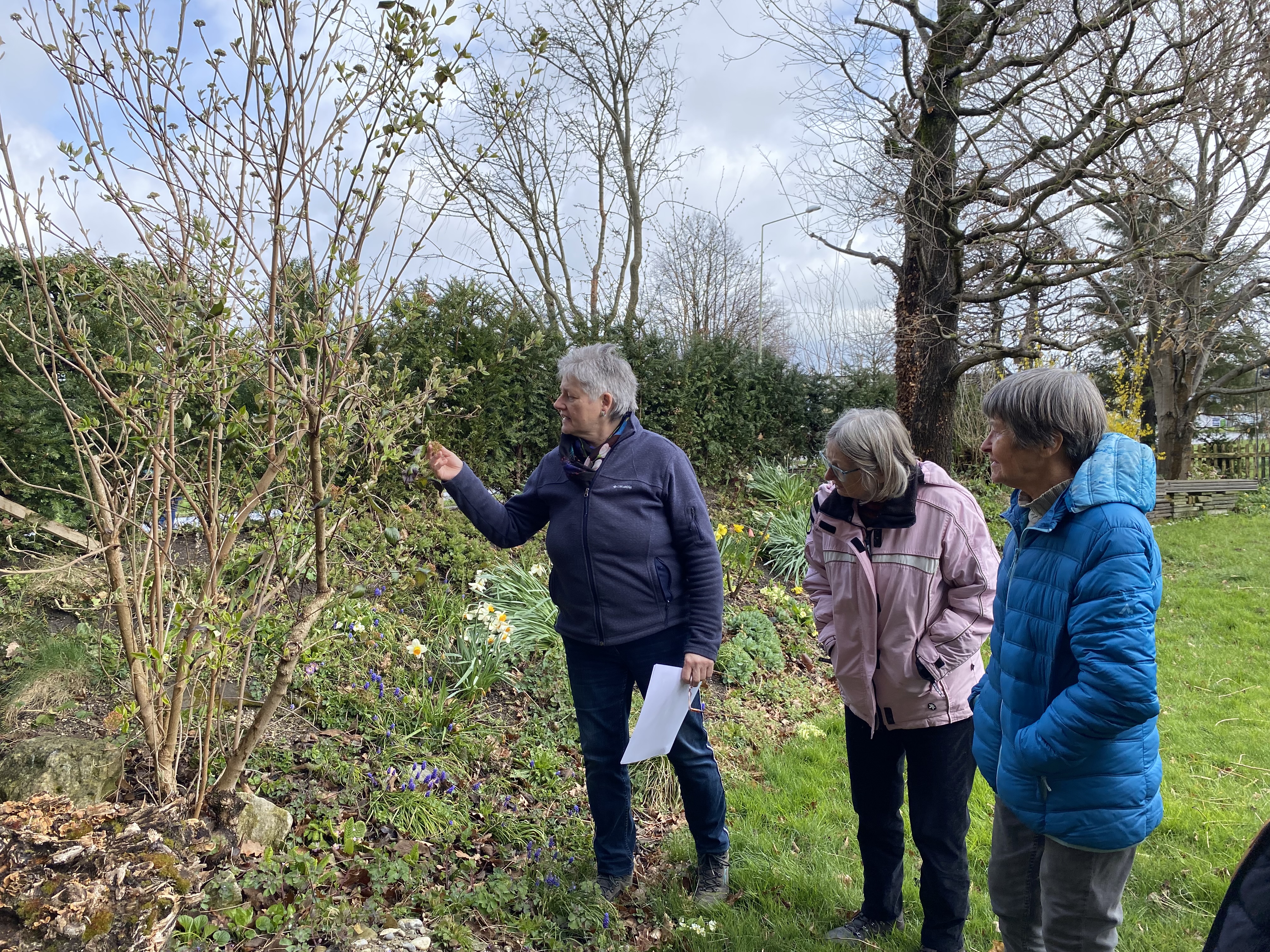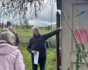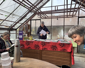 Gemeinsam durften wir bei Schnee draussen den Kaffee und Muffins im grossen Treibhaus von Gartencoach Barbara Vogel geniessen