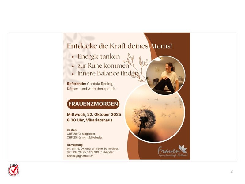 Anmeldung bis am 19. Oktober an Irene Schmidiger,