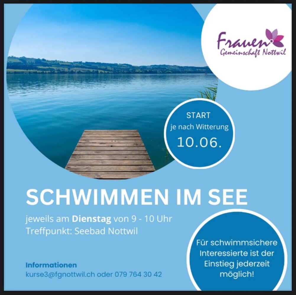 Bist du schwimmsicher und magst das Schwimmen im See? Dann spring mit uns ab dem 10. Juni jeden Dienstagmorgen 09.00 – 10.00 Uhr, ins kühle Nass.